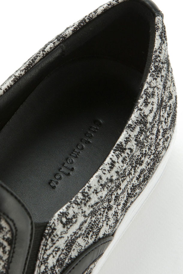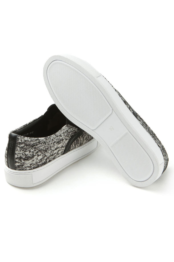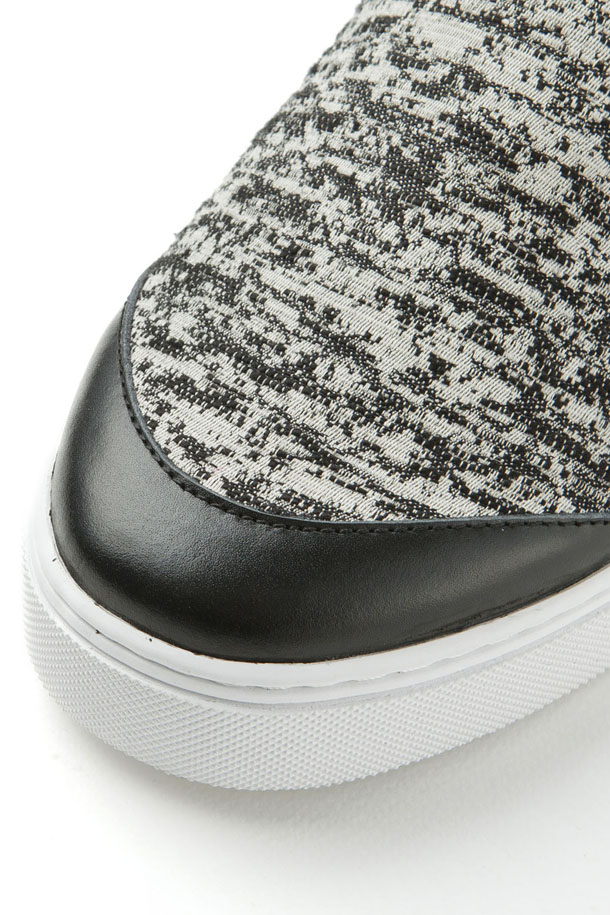 - 시즌 개발 투톤 자카드 원단과 가죽,스웨이드 배색이 독특한 남성 신발.