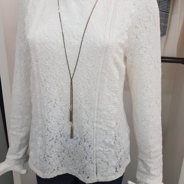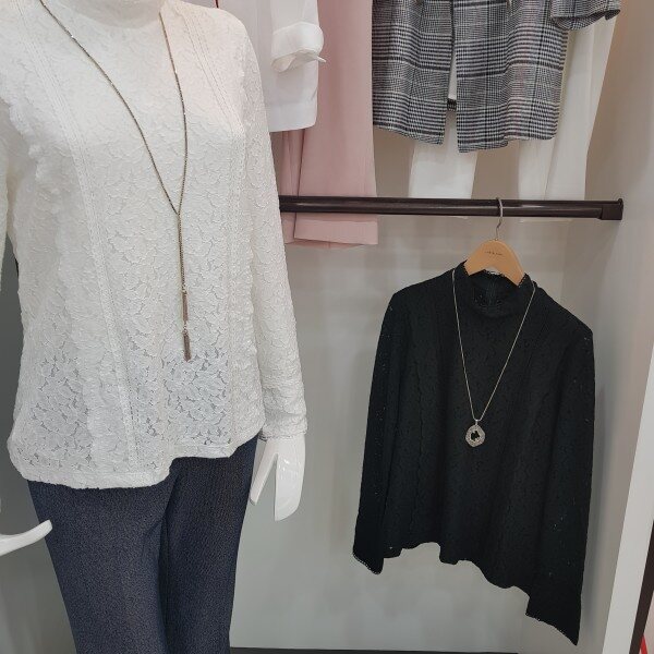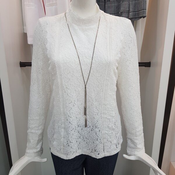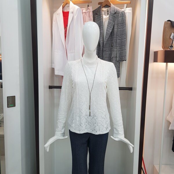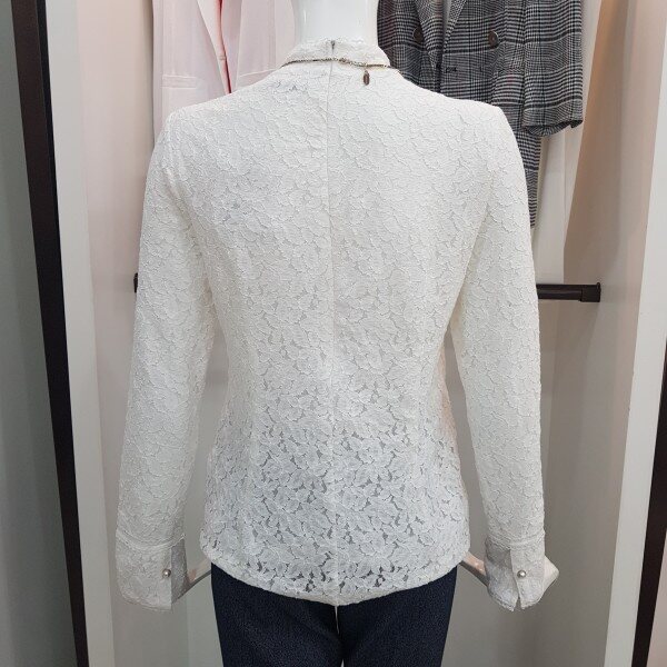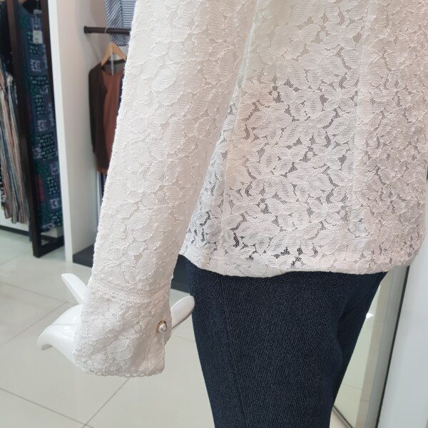 전체 레이스 소재의 슬림핏 실루엣이 여성스러운 블라우스형 티셔츠봄가을추천해용~