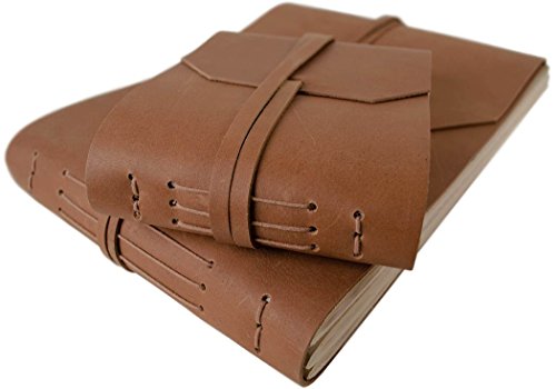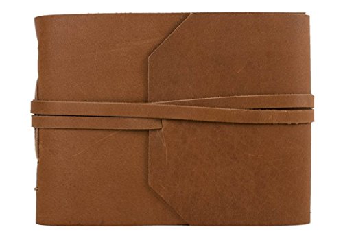 Beatnik Small Tan Handmade Leather Wrap Photo Album, Classic Style Pages (16cm x 22cm x 4cm)