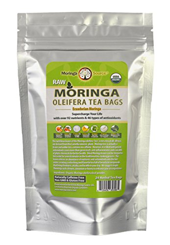 -. Feature : USDA ORGANIC: Raw Ecuadorian Moringa leaf power in tea bags. Vegan, GMO, and gluten free! / WHOLE BODY SUPPORT: Helps maintain healthy blood sugar, pressure, and joints, and elevates mood / NUTRIENT POWERHOUSE: Vitamins, minerals, antioxidants, anti-inflammatories, amino acids, and protein / UPLIFT YOUR DAY: Increase vitality, stamina, clarity, focus, and strengthen your immune system / HOT OR COLD: Great for a morning pick me up or an evening relaxation aid! 4-5 uses per bag