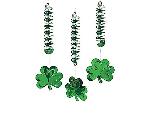12 St Patricks Day Foil Shamrock Spiral Dangler Decorations