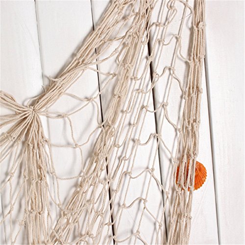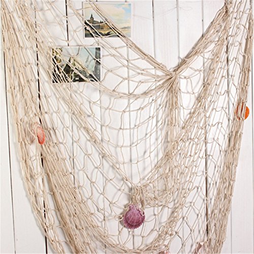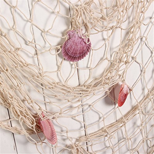 -. Feature : Giving you a lazy and romance mood,very unique home decoration style / This Decorative Fish Net is of strong Mediterranean Sea amorous feelings / Suitable for Home,Theme Party Hotel,Guesthouse,Cafe,Bookshop,Home,Restaurant ect / Decorating with some bright color of starfish,conch,life buoy,etc will bring better effect / Package Included: 1 XMediterranean Style Decorative Fish Net With Shells