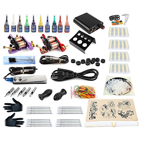 -. Title : Hommii Complete Tattoo Kit 2pcs Coil Tattoo Machine Guns 10 Color Inks Power Supply For Liner and Shader Gun Tattoo Artists + 20pcs tattoo needles, 5pcs 304 steel tips with more disposable tips