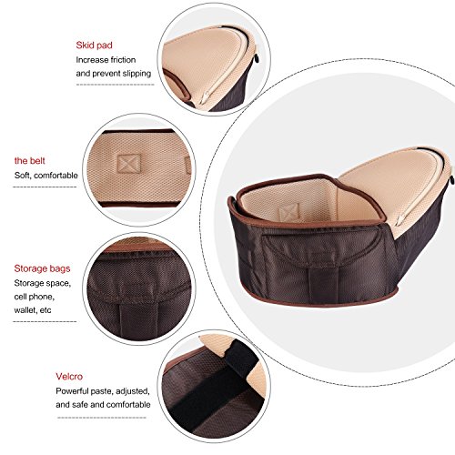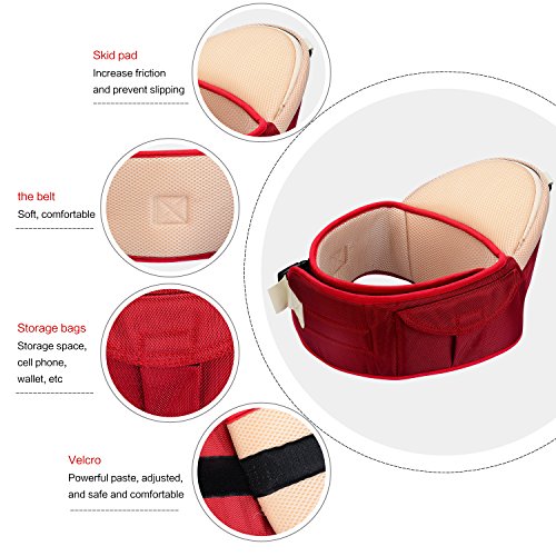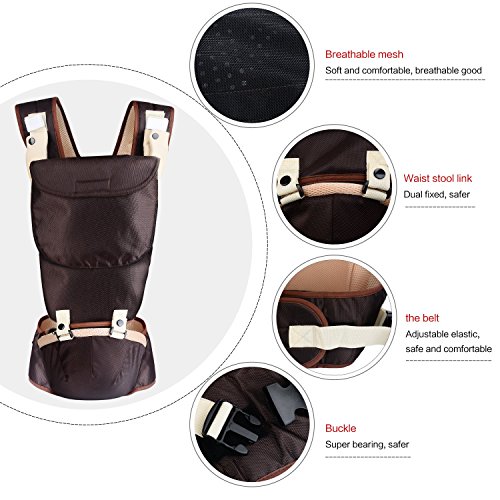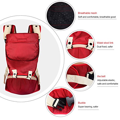 -. Feature : Soft head cover to protect baby against sunlight & strong wind + Ventilated mesh pocket to keep baby cool / Breathable fabric - Large breathable mesh, cotton fabrics feel comfortable and not deformed, more skin-friendly.Keep your baby's skin remains cool / Widening thick straps - Large thick increase the force area effectively reduce the pain, and the intermediate soft enrichment / Comfort waist stool - Detachable "Hip Seat" for baby to seat on instead of dangling. Fully supports baby's SPINE. Designed to prevent baby slip function decline. / Large storage bags - Pockets for storage, machine washable and compact;Fits in a diaper bag.