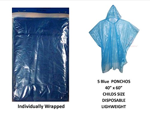5 Readi USA Blue Child Size Emergency Kids Rain Poncho - Disposable 40" x 60"