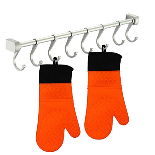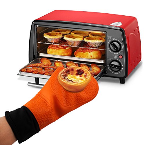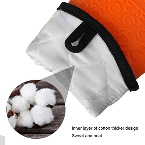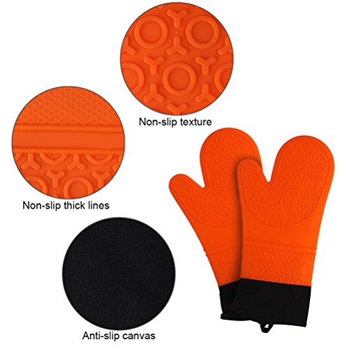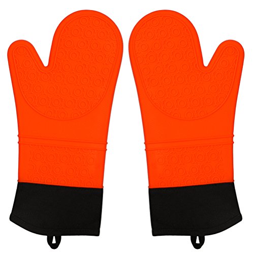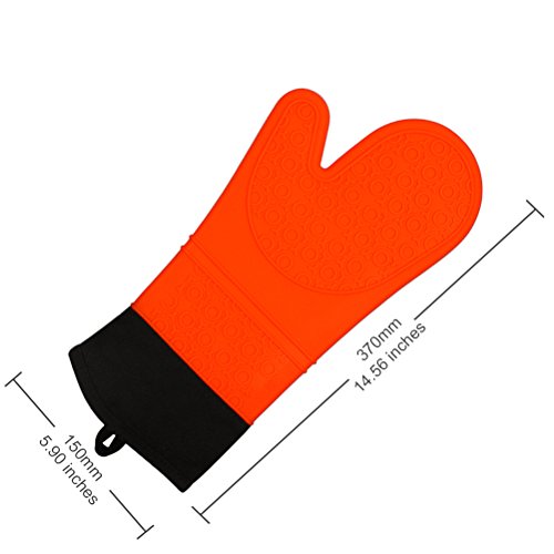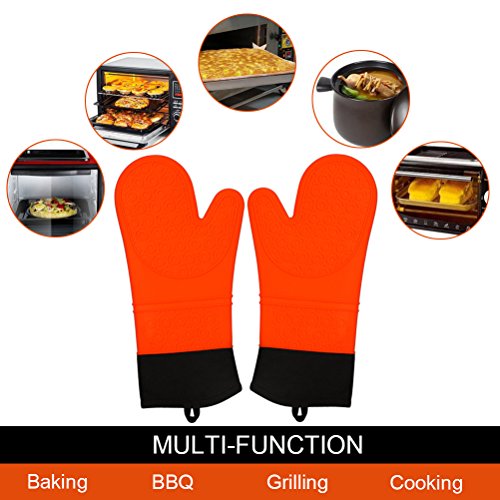 Silicone Oven Mitts Potholder-IUNIQEE Anti Slip Extra Long Kitchen Cooking Gloves Heat Resistant Gauntlet 1 Pair Orange Color for Barbecue Baking