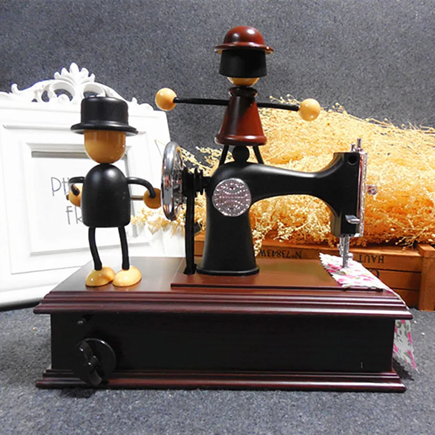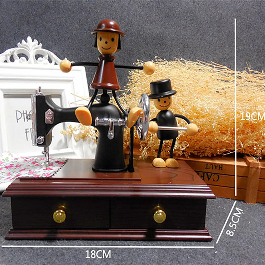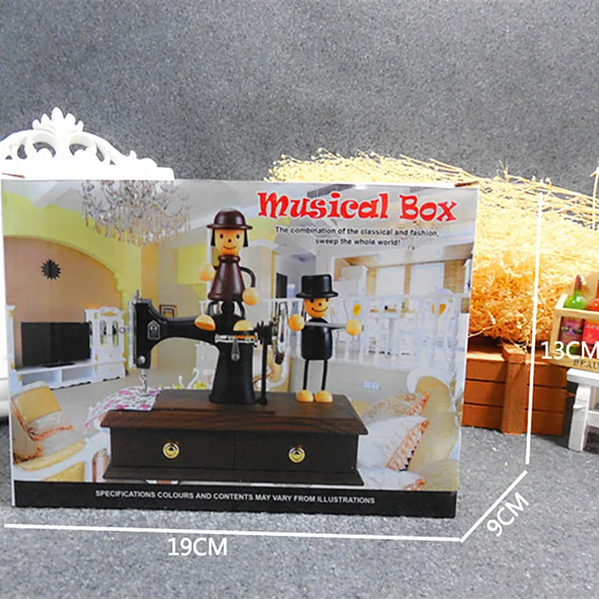 Home Decoration toy musical instruments Retro music box DIY Sewing Machine Shape Music Box Christmas present