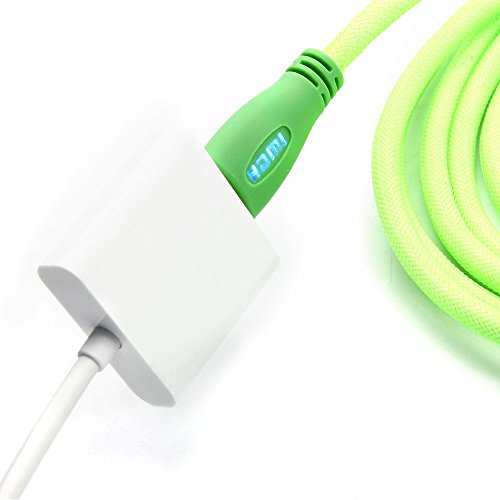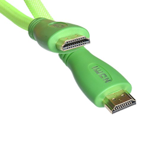 WGGE LED HDMI Cable 2.0 High speed, Nylon braiding, HDMI(19 PIN by copper wire), Gold connectors, Support 4k 1080p 3D TV, Ethernet, Home theater, HDTV, PS3,PS4, XBOX and set-top boxes (GREEN 10FT)