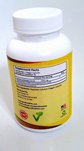-. Binding : Health and Beauty -. Brand : Good Health FX -. EAN : 0646437442725 -. Feature : WEIGHT LOSS - This appetite suppressant not only suppresses appetite but also burns fat. / 60% HCA (HydroxyCitricACID) - Much more than the recommended minimum. / VALUE FOR MONEY - A Premium Grade Weight Loss Product for Under $20 with our usual 100% Satisfaction Guarantee. / VEGETARIAN SAFE - No animal products at all used in these supplements or their casings. / OTHER PRODUCTS - Why not try our Good Health FX Organic Coconut Oil Capsules? -. IsAdultProduct : 0 -. Label : Good Health FX -. Manufacturer : Good Health FX -. MPN : 646437442725 -. PackageQuantity : 1 -. PartNumber : 646437442725 -. ProductGroup : Health and Beauty -. ProductTypeName : HEALTH_PERSONAL_CARE -. Publisher : Good Health FX -. Studio : Good Health FX -. Title : Garcinia Cambogia Extract Pure 60% HCA Vegetarian V Cap Capsules Weight Loss Supplement Lose Weight Fat Burner Burns Fat Naturally Pure Increase Energy Appetite Suppressant Suppress Appetite -. UPC : 646437442725