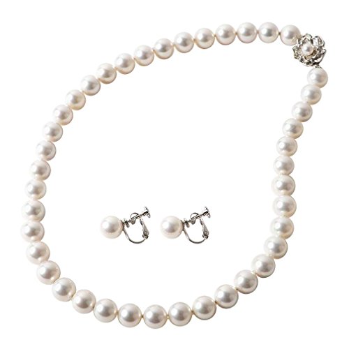 -. Title : まつよ 花珠貝パール パールネックレス イヤリングセット ホワイト 白真珠 8mm 38cm 高級 日本製 花珠 貝パール 冠婚葬祭