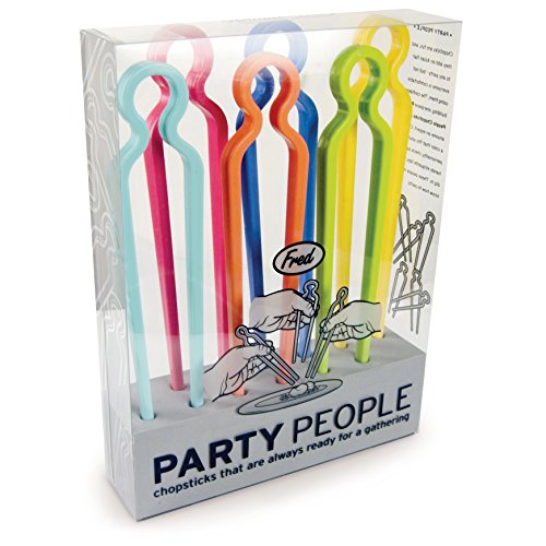 -. Binding : Kitchen -. Brand : Fred & Friends -. EAN : 0887683702212 -. Feature : This set includes 6 chopstick style utensils. / The chopsticks are made from sturdy ABS plastic. / These single-piece chopsticks are easier to use than regular chopsticks. / The chopsticks include a foam cube for easy storage. / Handy etiquette tips are P.R.Inted on the back of the base. / 6 colorful plastic chopstick style utensils -. IsAutographed : 0 -. IsMemorabilia : 0 -. Label : Fred -. Manufacturer : Fred -. Model : PPCS -. MPN : B000I21JWS -. PackageQuantity : 6 -. PartNumber : B000I21JWS -. ProductGroup : Kitchen -. ProductTypeName : KITCHEN -. Publisher : Fred -. Studio : Fred -. Title : Fred & Friends PARTY PEOPLE One-Piece Chopsticks, Set of 6 -. UPC : 887683702212
