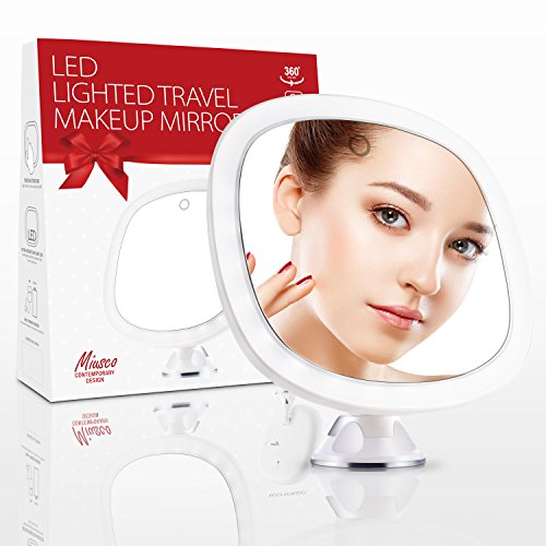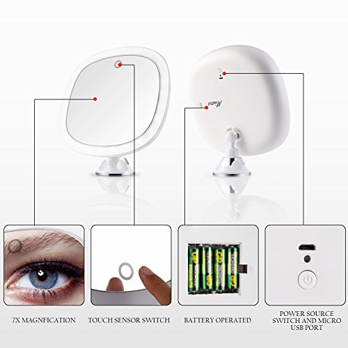 Miusco 9 inch 7X Magnifying Lighted Makeup Mirror, Cordless Travel Mirror, Vanity Mirror with Locking Suction, Battery or USB Operated