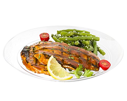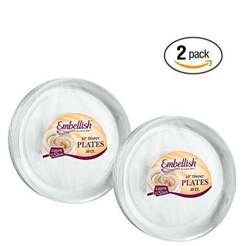Embellish Clear Premium Hard Plastic Party Plates, Scrollware 10’’ Inch Clear Dinner Plates 20 Count Pack of 2 (40 Plates Total)