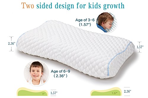 - Two different heights for kid age 3-9,as gets older, kid can turn the pillow around and use the taller end of it for better neck support.