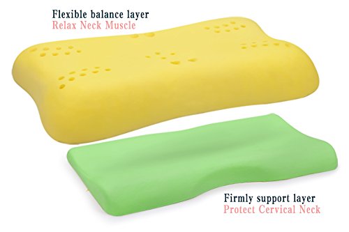 - Double layer memory foam design,the outer layer like marshmallow is soft and comfort which make neck muscle relax.the inner layer like dough is firm,which support cervical,promote cervical spine alignment.