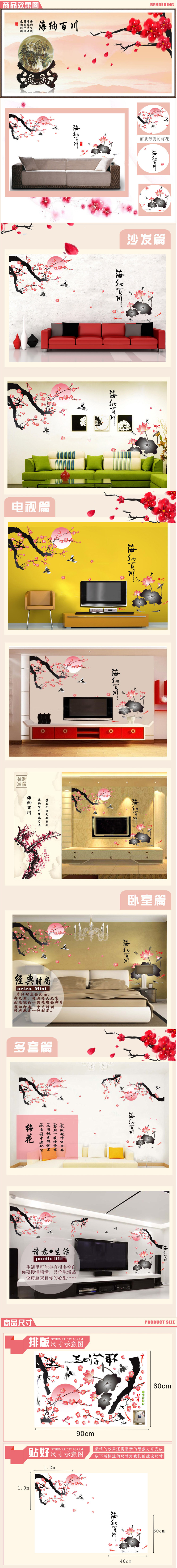 沃雅 客厅沙发电视背景墙书房卧室中式风格装饰墙贴纸 梅花RD897