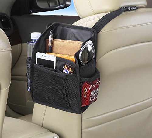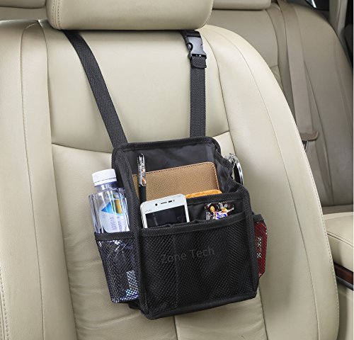 The Zone Tech Swinging Car Seat Organizer is ideal for keeping your odds and ends from shifting every time your car swerves. It is great to store anything you want to prevent your kids or pets from messing with. The Organize will keep your car neat and organized. With its seven pocked it keeps item contained yet still readily accessible. Constructed out of heavy duty material it will last you long. Great for storing snacks, baby toys, handheld games, phones, E-Z Pass, gum, drinks, sanitizers, notebooks, DVDs, ...