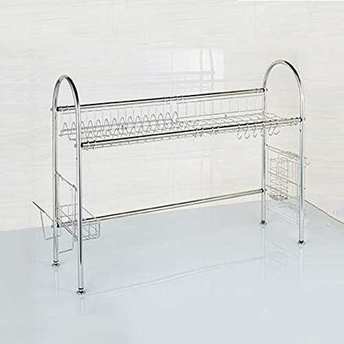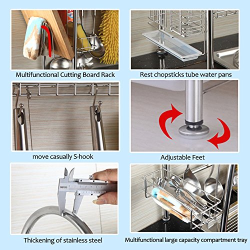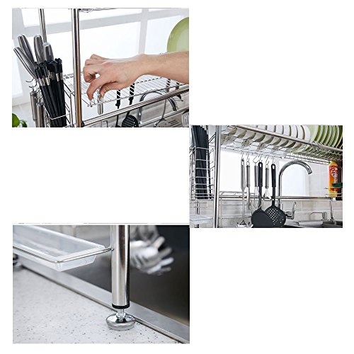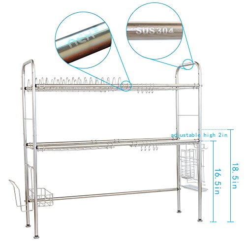 NEX 2-Tier Stainless Steel Dish Rack Nonslip Height Adjustable with Chopstick Holder (Double Groove)