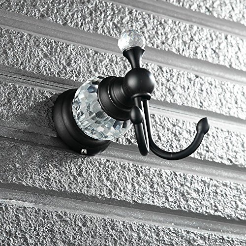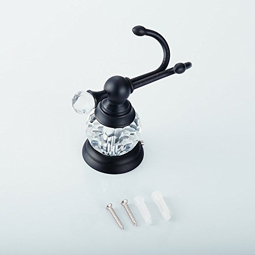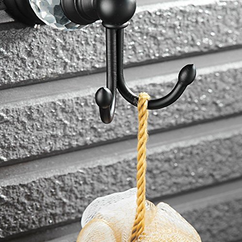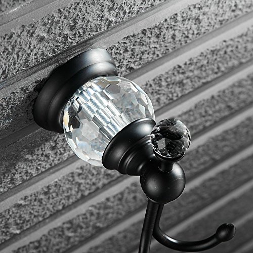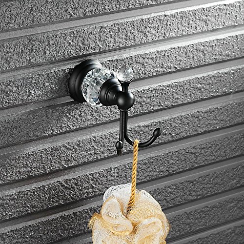 Beelee BA5206B Luxury Crystal & Brass Black Robe Hook Bathroom Hangings Towel Rack Clothes Hook , Double Wall Mounted Towel Hook, Double Robe/Towel Hook Oil Rubbed Bronze