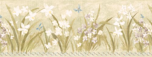 Brewster 499-3034 Butterfly Meadow Border Wallpaper, Olive