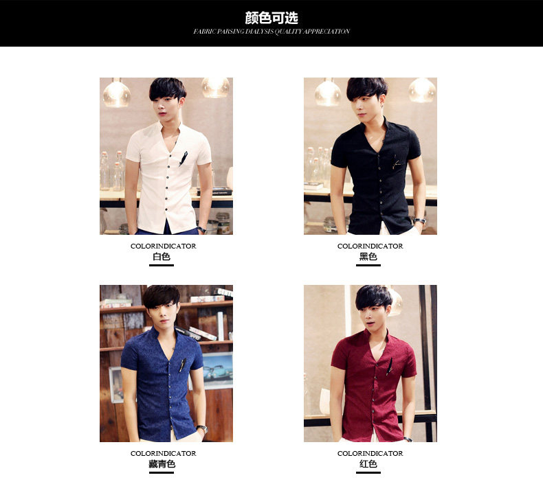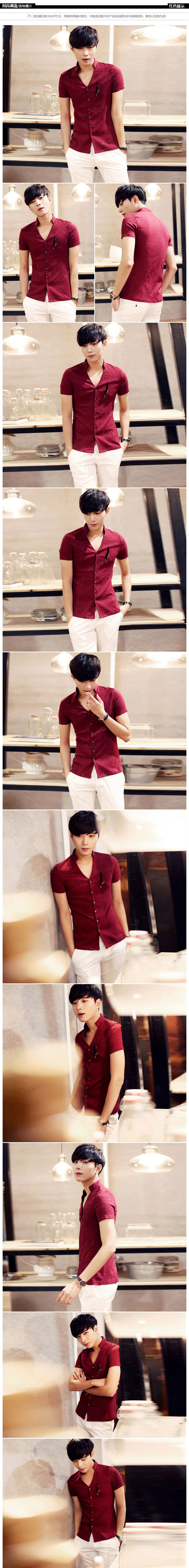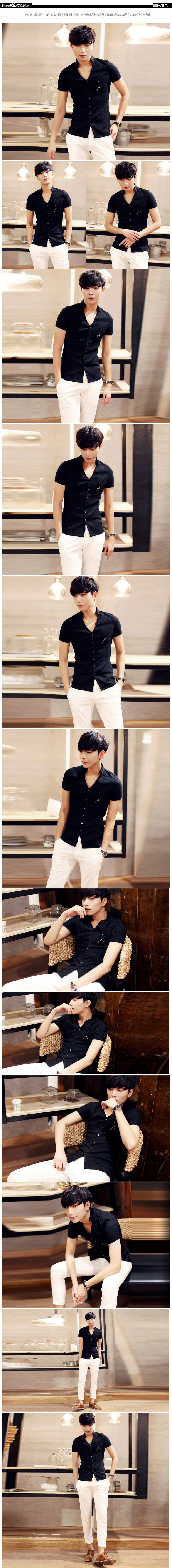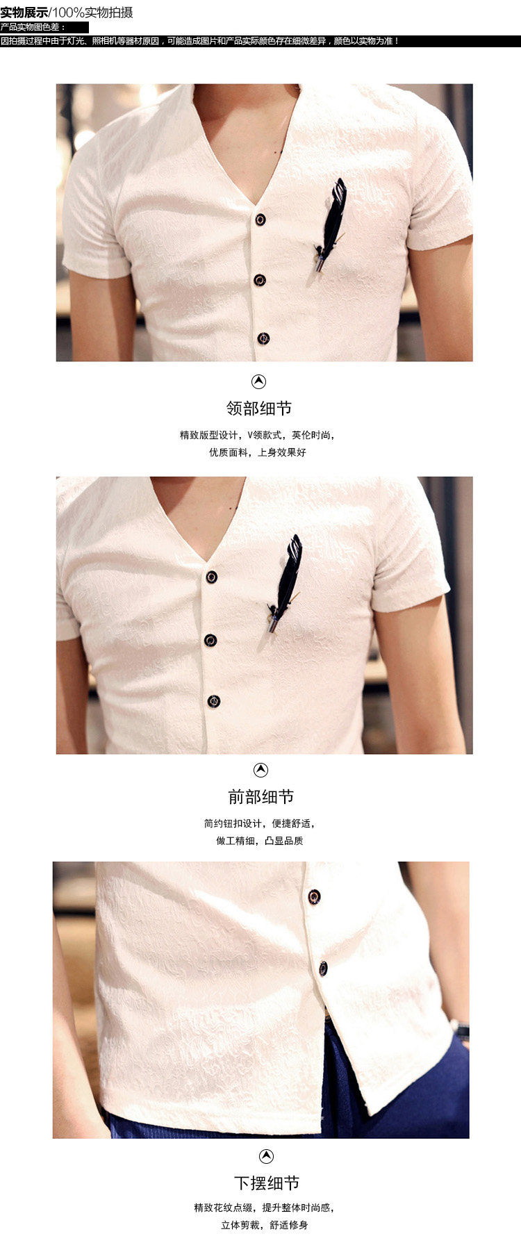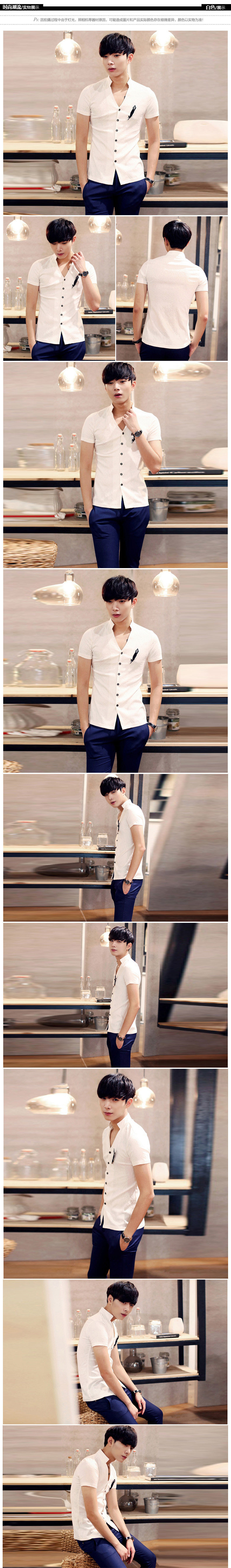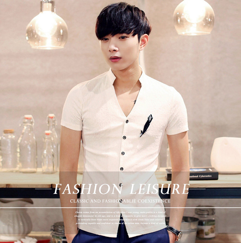 卓野中国风夏季韩版纯白色立领短袖衬衫修身休闲提花衬衣男装寸衫?