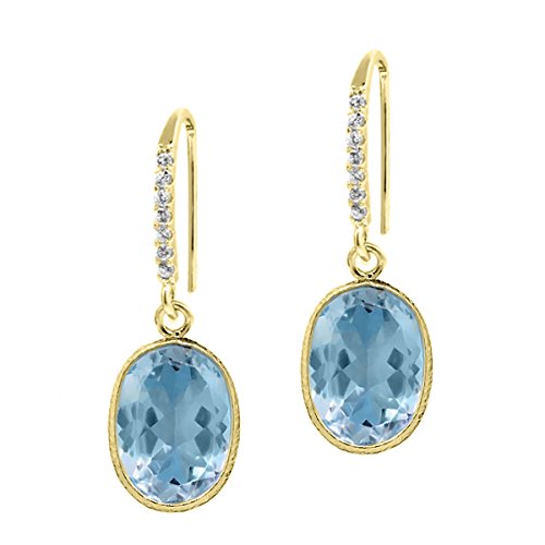 -. Title : 14.00 Ct Blue Topaz 14x10mm Oval Shape Gold Plated 925 Silver Dangle Earrings