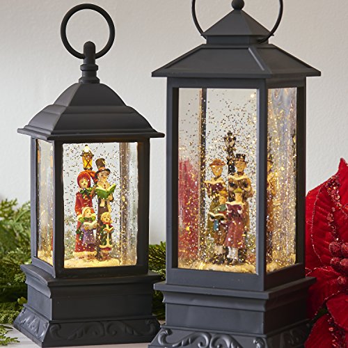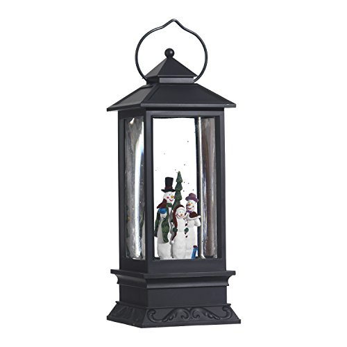 A delightful holiday décor piece to enjoy year after year. RAZ Imports water lantern measures 11 inches X 4 inches X 4 inches. Snow globe lantern is made of sturdy plastic with black finish. Continuous swirling glitter shines in this lighted snow globe lantern. Requires 3 AA batteries to operate holiday snow globe lantern (not included). Includes 6 hour on, 18 hour off timer.Feature