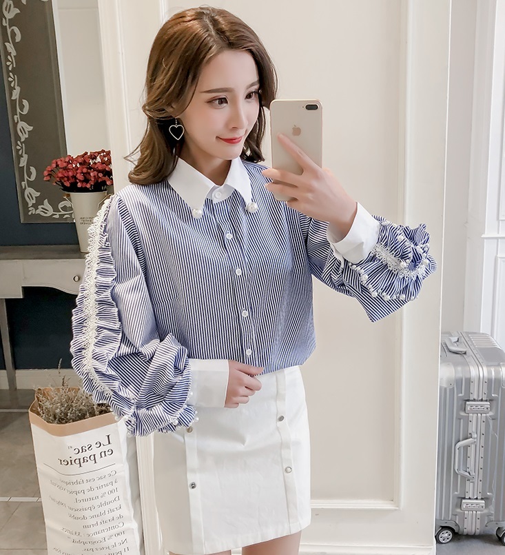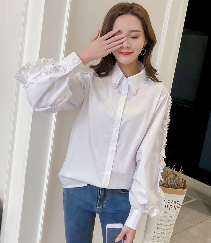 襟元にもパールをオンして、1枚着でもサマになる大人女子にぴったりの1枚です。