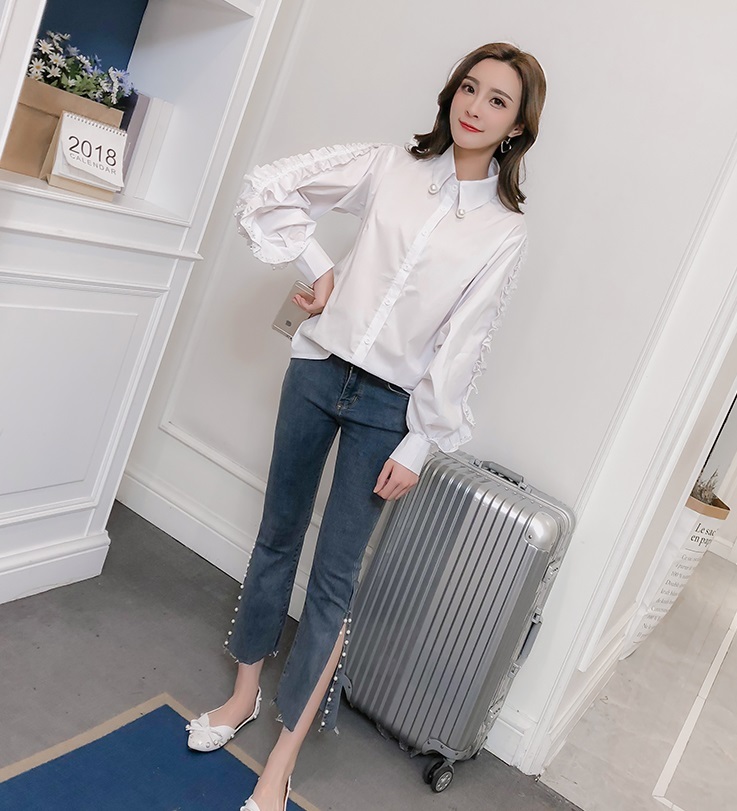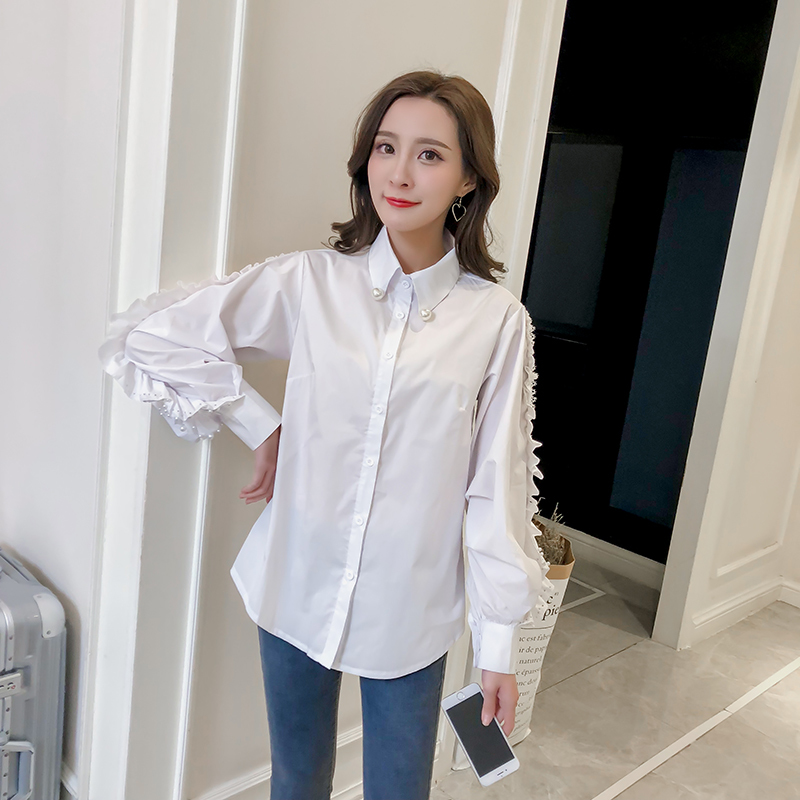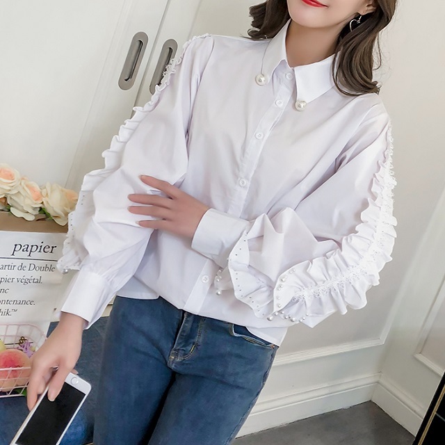 ショルダー部分にあしらったフリルとパールが女性らしい華やかさをプラスしてくれます。