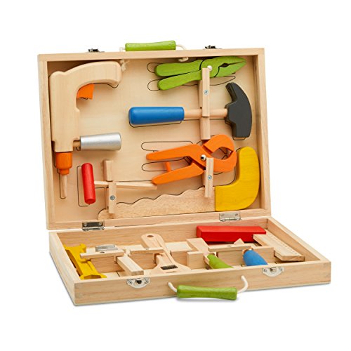 -. Feature : Top Race® High quality tool box set for kids, with colorful wooden tools set of 12 / Each wooden tool is beautifully painted and is perfectly sized for litte hands and is sure to fascinate your kids / The tool box features 2 hinged locks and 2 wooden handles to allow kids to carry it for creative role play / Includes: toolbox, big hammer, wrench, spanner, pliers, nippers, screwdriver, ruler, drill, pipe wrench, small hammer, saw, chisel. / Made from the highest quality wood, responsibly sourced materials and 100% safe, for ages 3+