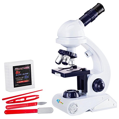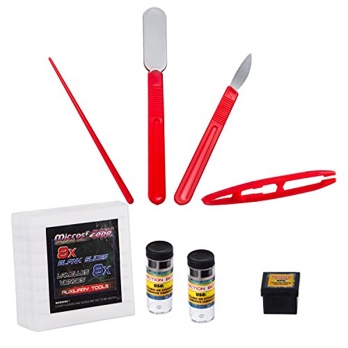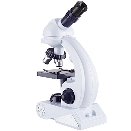 The M26-KT1 is a beginner microscope set for kids, with everything you need to start your child's journey into the world of science. It includes an easy-to-use plastic microscope with three objective lenses for different magnifications: 80X, 200X, 450X. The set also includes slides and a collection of tools for preparing your own specimens. The microscope features selectable top and bottom LED light-sources (AA batteries not included).