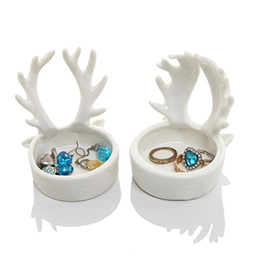-. Binding : Kitchen -. Brand : MyGift -. Color : White -. Feature : Set of 2 deer antler candle holders with Merry Christmas written across the front / Perfect for displaying small candles during the holidays / Glossy white ceramic provides a sleek, modern style / **Official MyGift® product.** / Approximate Dimensions (in inches): 3.1 H X 2.5 W X 2.5 L -. IsAutographed : 0 -. Label : MyGift -. Manufacturer : MyGift -. MPN : TB-CAN0015WHT -. NumberOfItems : 1 -. PackageQuantity : 1 -. PartNumber : TB-CAN0015WHT -. ProductGroup : Home -. ProductTypeName : HOME -. Publisher : MyGift -. Size : Small -. Studio : MyGift -. Title : Set of 2 Ceramic Deer Antler Jewelry Ring Holder / Decorations Candle Holder , White