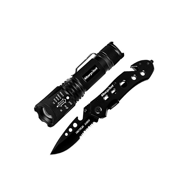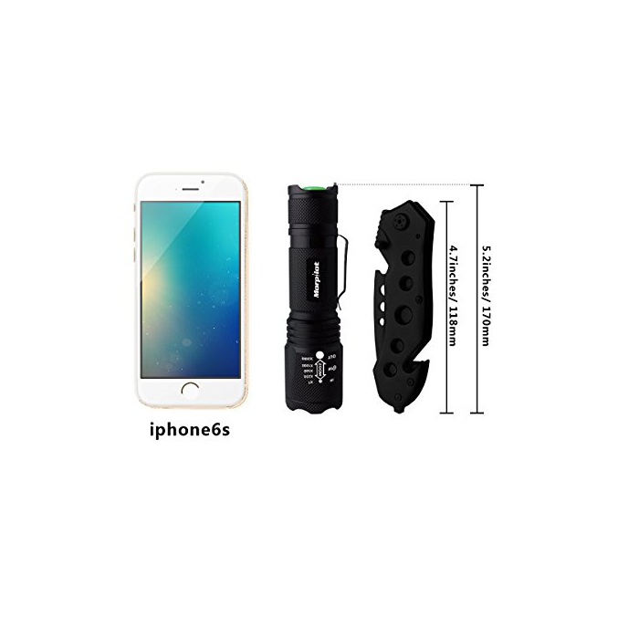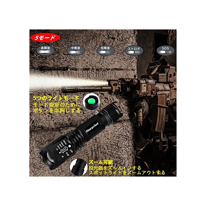 Morpilot 회중전등 미채 전술 회중전등 5모드 전술 적인 회중전등 휴대 경량 저 소비전력 강력 / 밤낚시/ 등산/ 자전거 라이트/ 방범/ 긴급 재해/ 방재 상품/ 정전 시/