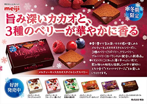 原材料:砂糖、カカオマス、植物油脂、ココアパウダー、ココアバター、ベリーパウダー(ラズベリー、ブルーベリー、クランベリー)、乳化剤、香料、酸味料、(一部に乳成分・オレンジ・大豆を含む)