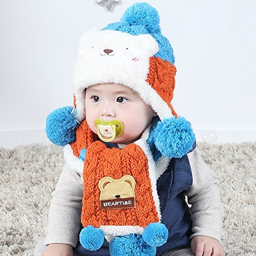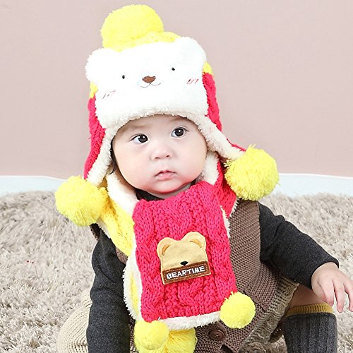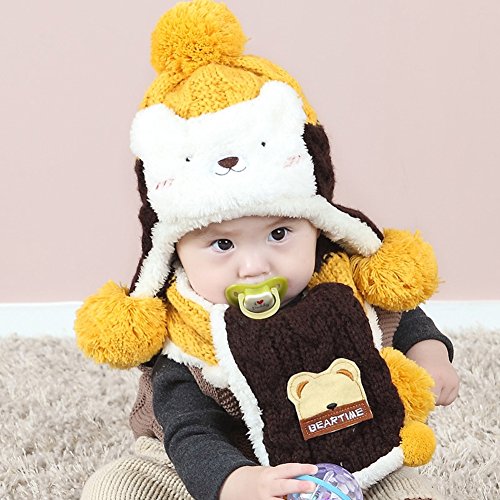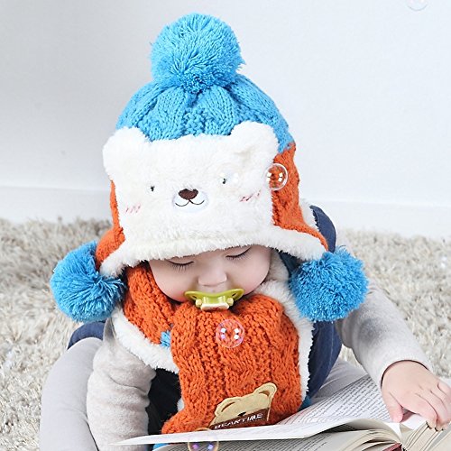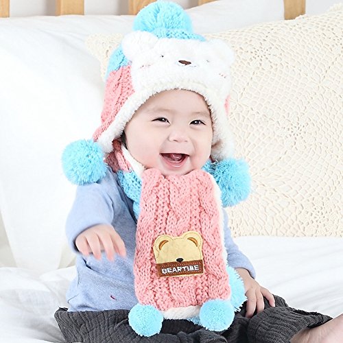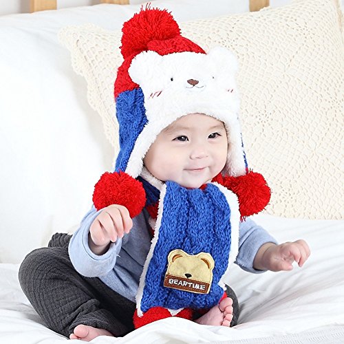 (BERTERI)/Accessories/Cold Weather Accessories/DIRECT FROM USA/Bear Plus Velvet Ear Protection Warm Hat Scarf for Cute Baby Boy/Girl Soft Toddler Infant Kid...