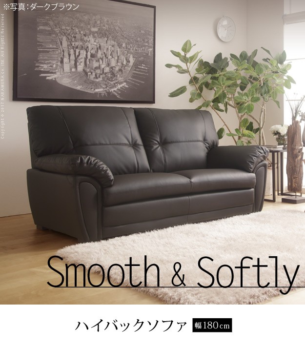 ●ソファー ノルディック デザイン 合皮 ハイバック 3人掛 ポケットコイル