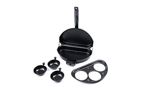 Breakfast for dinner will become a common event in your household with this Omelette Pan Set. Use this multi-functional pan to poach eggs or make a tasty omelette packed with all your favorite toppings. The set includes our folding omelette pan and removable poacher insert with 3 individual egg cups. Use the durable carbon steel pan with the insert to cook perfectly round, smooth, and soft poached eggs or use without the insert to easily make delicious folded omelettes. Features a convenient non-stick surface for easy release and clean-up. Breakfast made simple!Feature