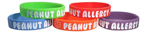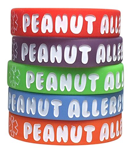 Kid's Peanut Allergy Silicone Medical Alert Bracelet(Pack of 5) Red, Orange, Blue, Purple, Green (7 inches)