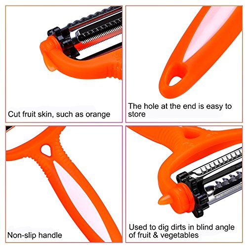 - Multifunction Peelers - Our peeler has three blades to meet your different requirements, you can turn to selection for using. The peeler is designed with ergonomics, and the material is very environment- friendly.