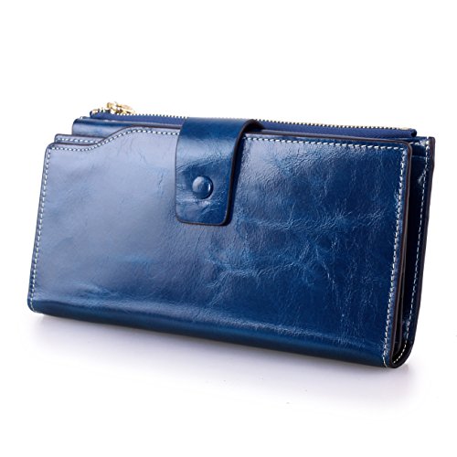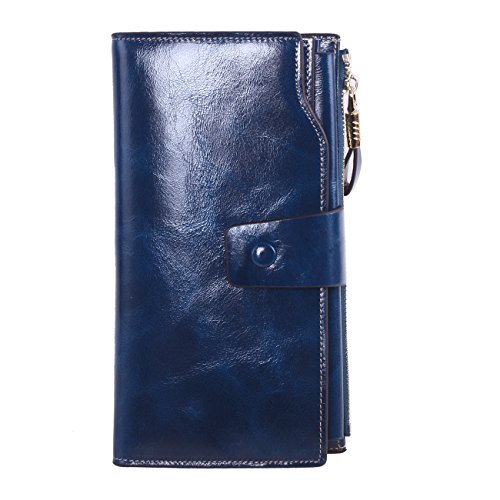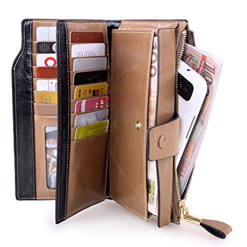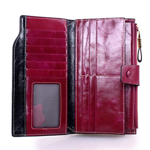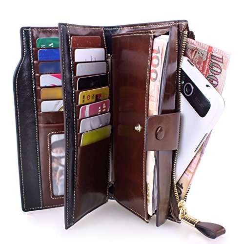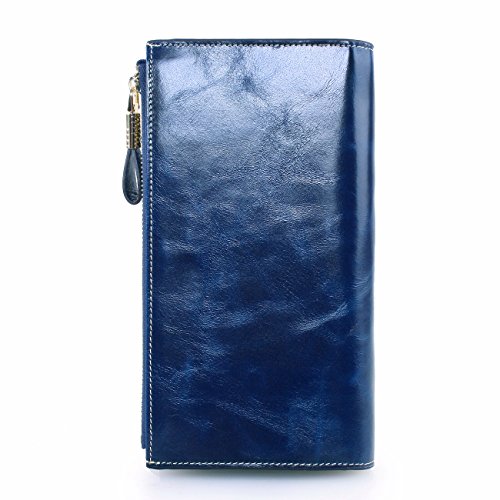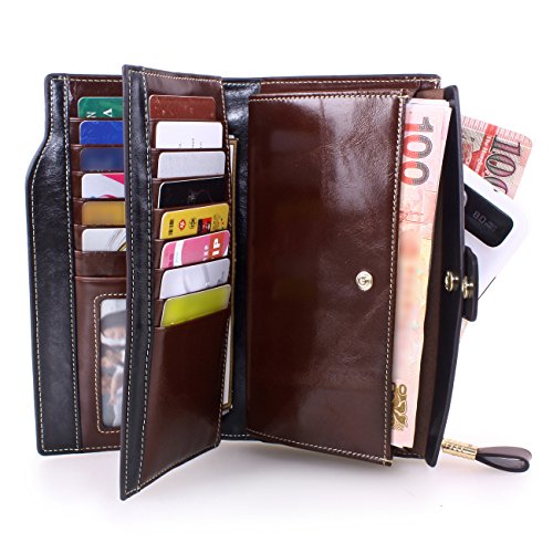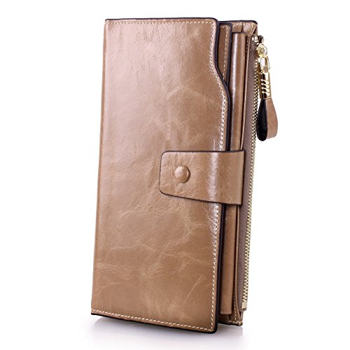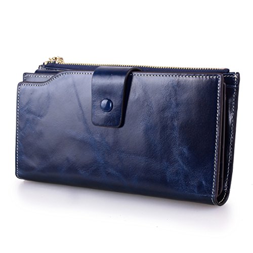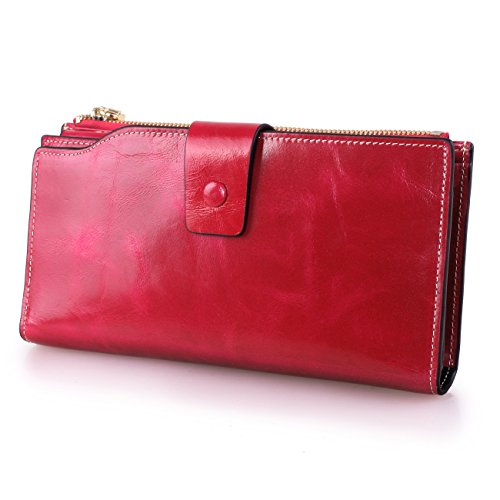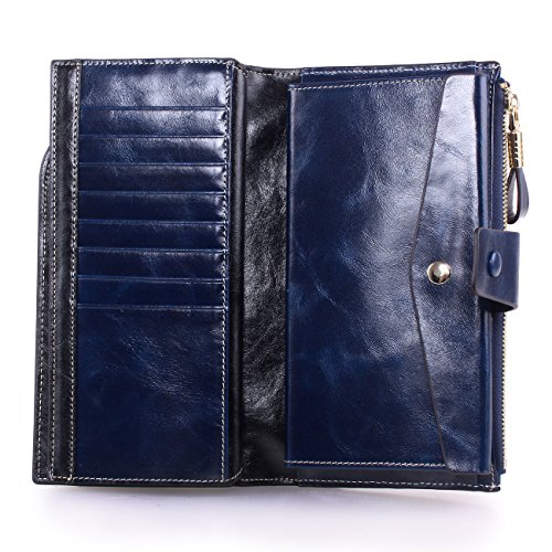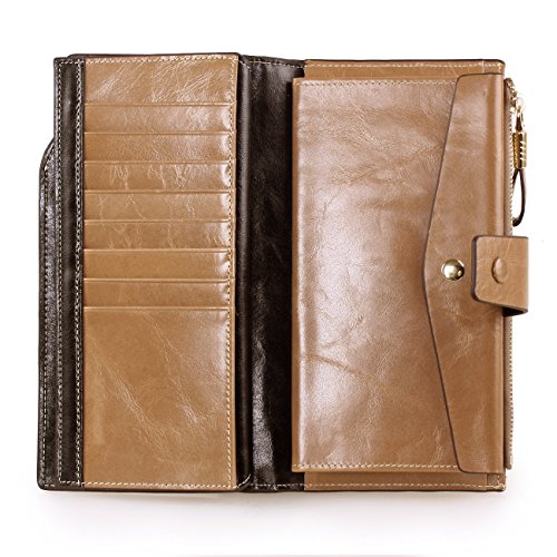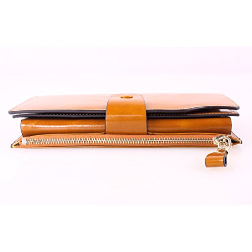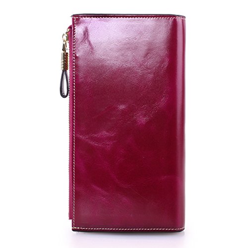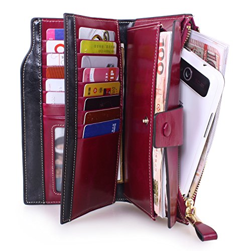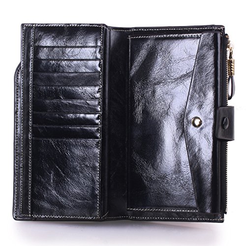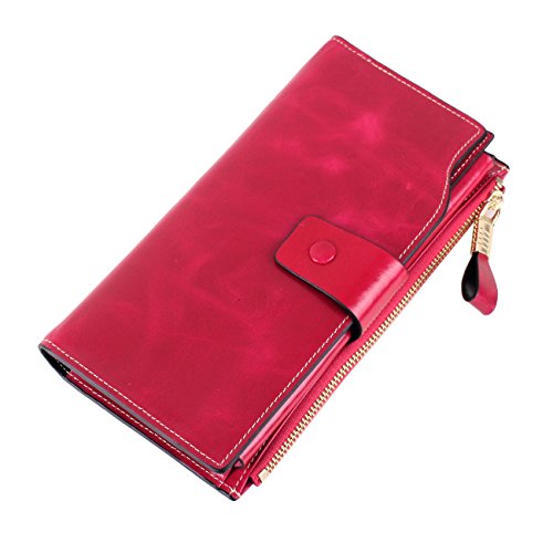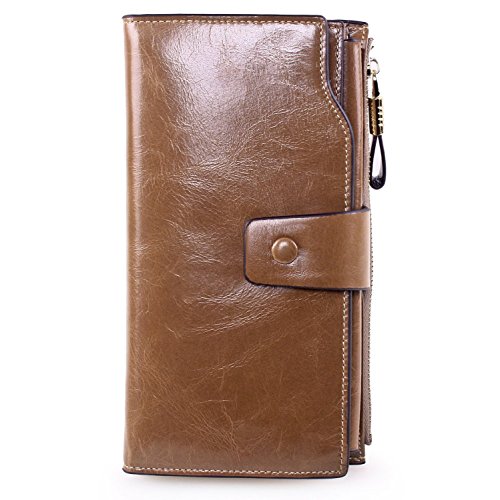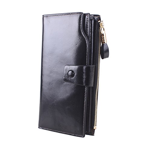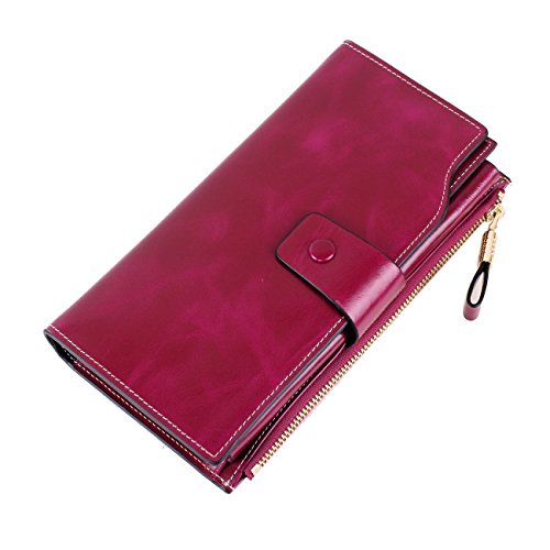 Material: Top grain oil wax cowhide(Genuine Leather) Size: 7.48 x 3.94 x 0.79 inches Weigh: 5.47 ounces Style: OL style Characteristic: Large capacity design. Delicate snap button and zip closure,easy to hold your your phone, cards, bills and money. About the oil waxy leather: Oil wax cowhide is made of top layer leather which is seems more shiny or glossy after the process of superficial by burnishing, oiling and waxing, just like add wax oil into leather. It is a fashion craftwork of leather with vintage artistic effect. This wallet is made of Oil wax cowhide, which has many irregular wrinkles, and clear texture. This is natural leather texture formation, also is the characteristics of Oil wax cowhide. The longer the better, the leather will be more luster; the more likely they were to have lasting appeal. How to maintain the leather bag: Keep your Oil wax cowhide product away from WATER, OIL STAINS; because Oil wax cowhide has strong Water absorption and oil adsorption. If the surface of Oil wax cowhide product has light scratching, just used soft cloth clean it repeatedly. If the surface of Oil wax cowhide product has Stains, just used colorless wax oil daub and clean it. The real color of the bag may be slightly different between the photo and the actual item shown on website caused by many factors such as brightness of your monitor and light brightness. It is totally normal for any mistake owing to munual measurement.Cowhide material has natural leather smell,but it will be disappear after you use in a few days. 0