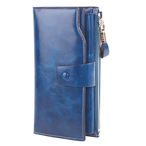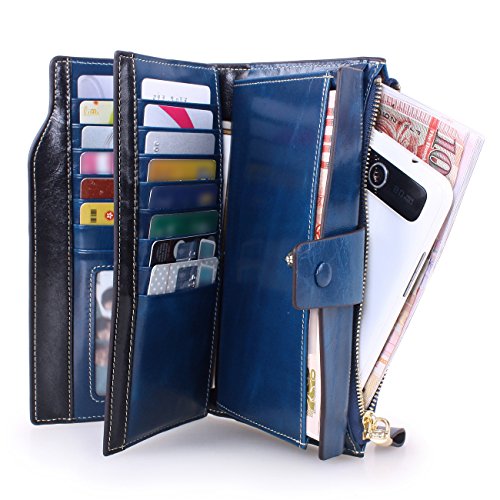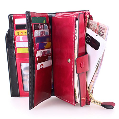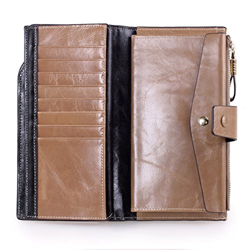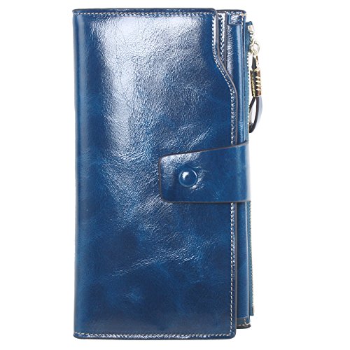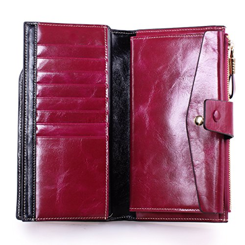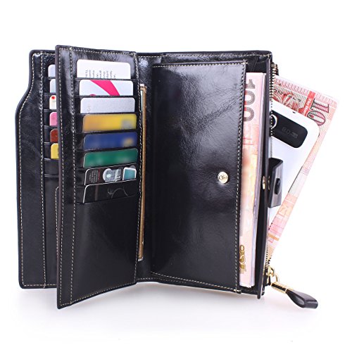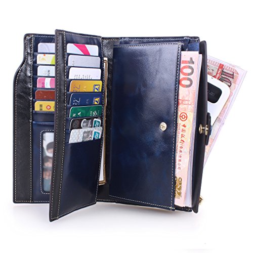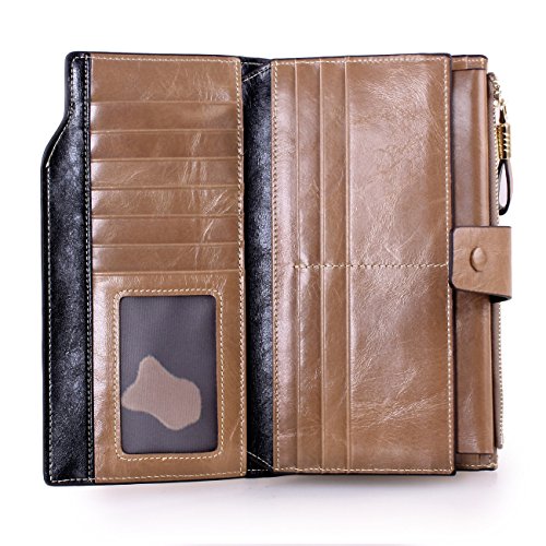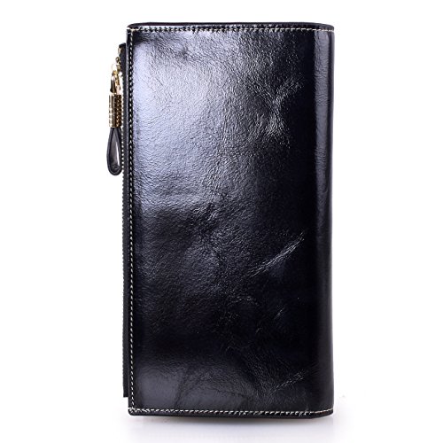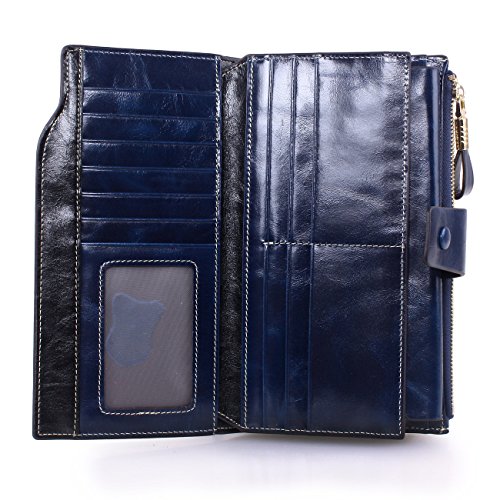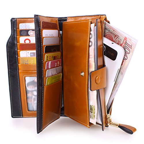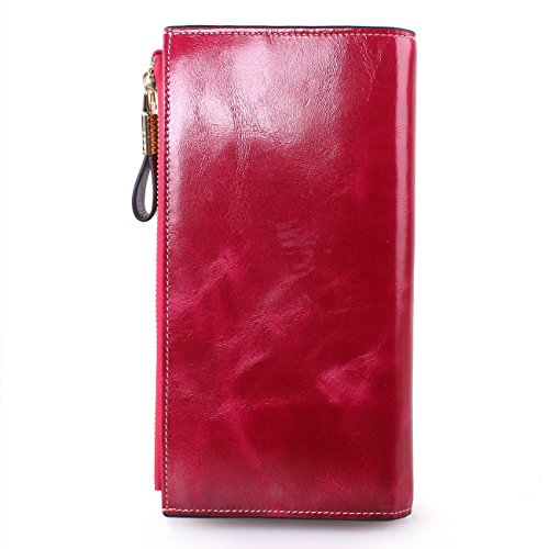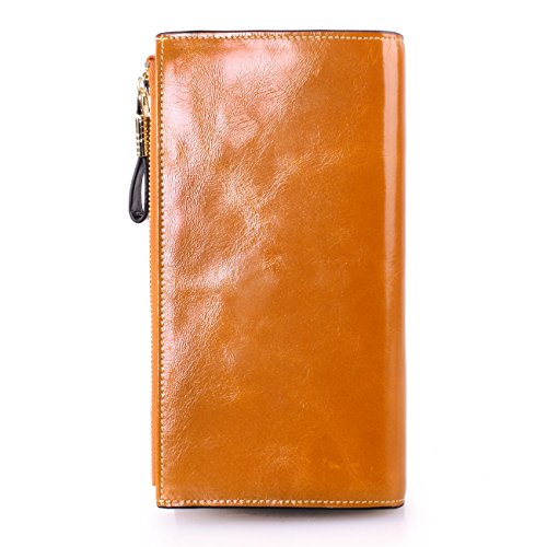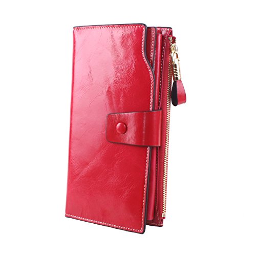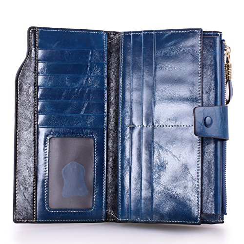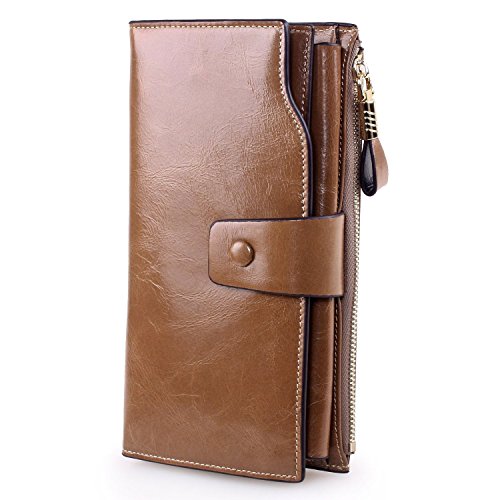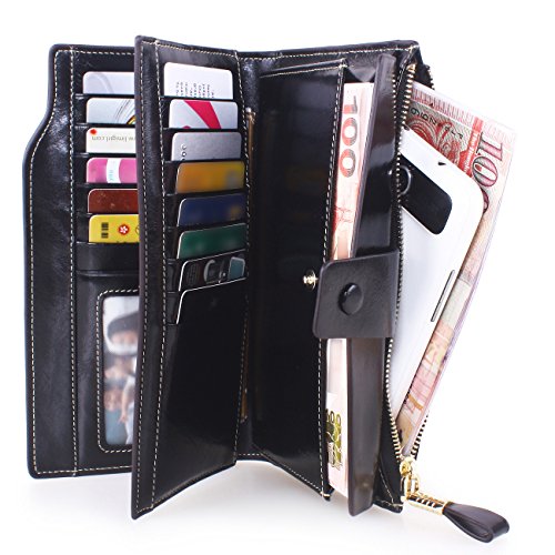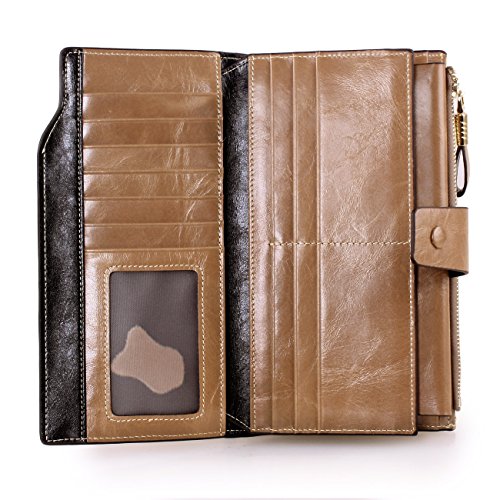 Material: Top grain oil wax cowhide(Genuine Leather) Size: 7.48 x 3.94 x 0.79 inches Weigh: 5.47 ounces Style: OL style Characteristic: Large capacity design. Delicate snap button and zip closure,easy to hold your your phone, cards, bills and money. About the oil waxy leather: Oil wax cowhide is made of top layer leather which is seems more shiny or glossy after the process of superficial by burnishing, oiling and waxing, just like add wax oil into leather. It is a fashion craftwork of leather with vintage artistic effect. This wallet is made of Oil wax cowhide, which has many irregular wrinkles, and clear texture. This is natural leather texture formation, also is the characteristics of Oil wax cowhide. The longer the better, the leather will be more luster; the more likely they were to have lasting appeal. How to maintain the leather bag: Keep your Oil wax cowhide product away from WATER, OIL STAINS; because Oil wax cowhide has strong Water absorption and oil adsorption. If the surface of Oil wax cowhide product has light scratching, just used soft cloth clean it repeatedly. If the surface of Oil wax cowhide product has Stains, just used colorless wax oil daub and clean it. The real color of the bag may be slightly different between the photo and the actual item shown on website caused by many factors such as brightness of your monitor and light brightness. It is totally normal for any mistake owing to munual measurement.Cowhide material has natural leather smell,but it will be disappear after you use in a few days. 0
