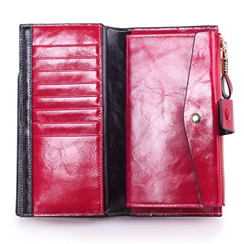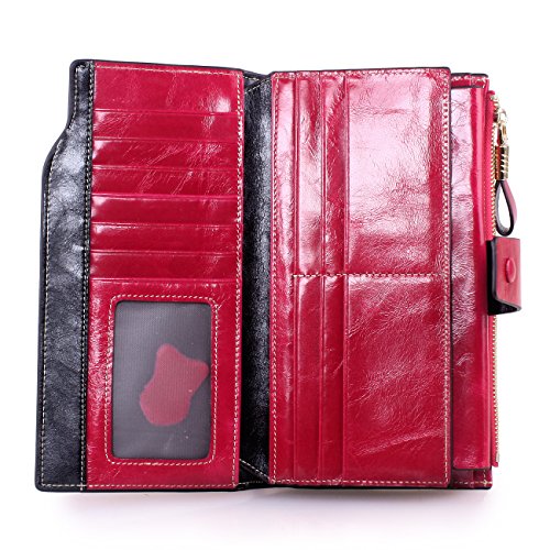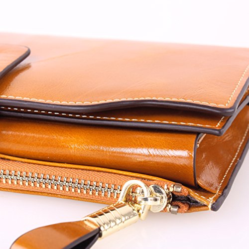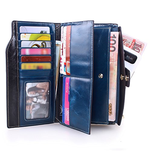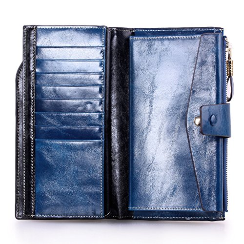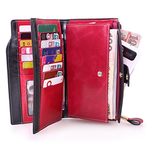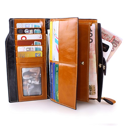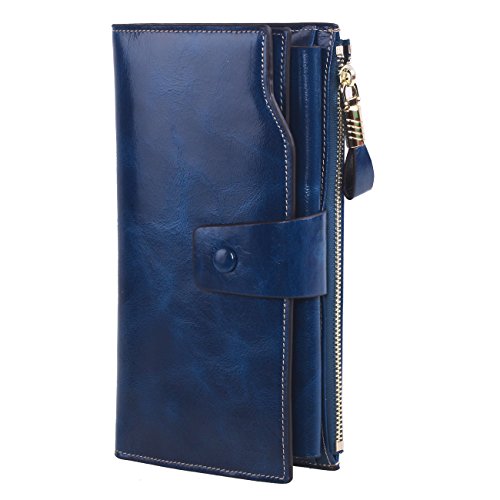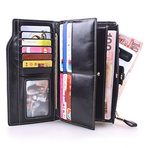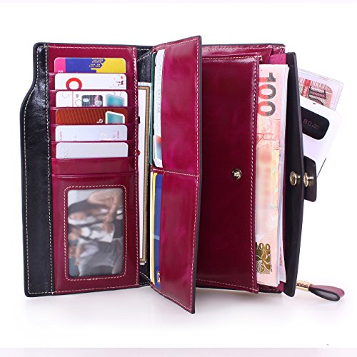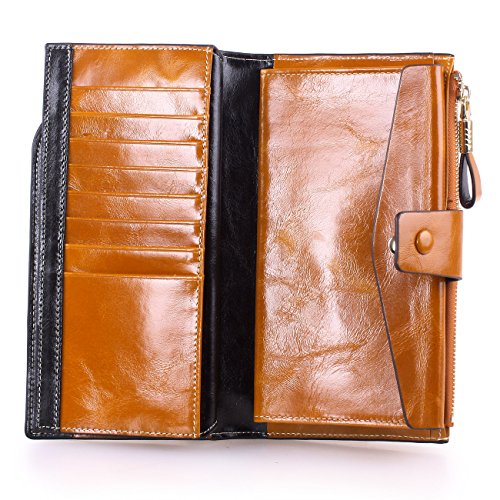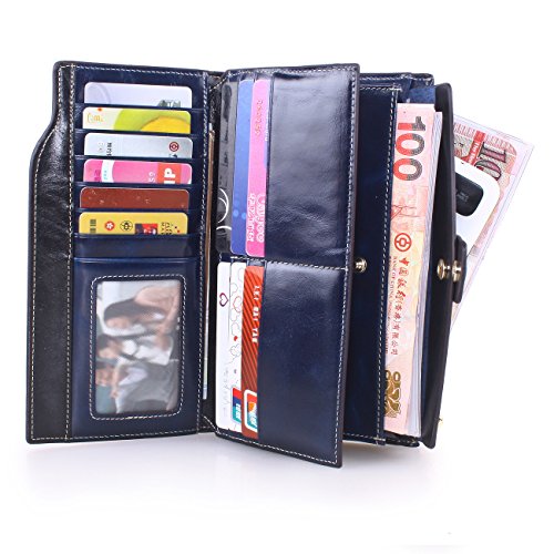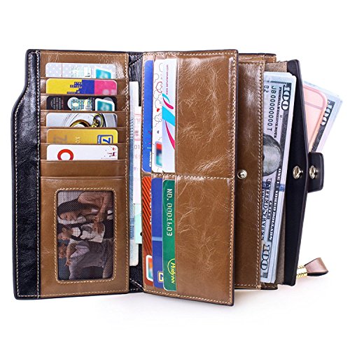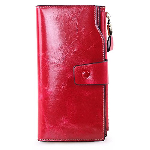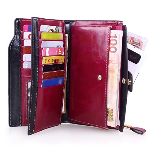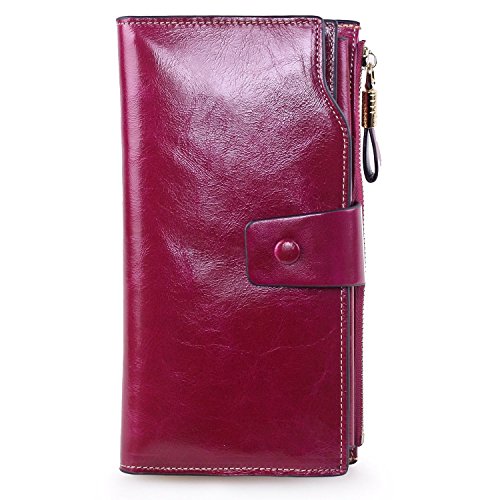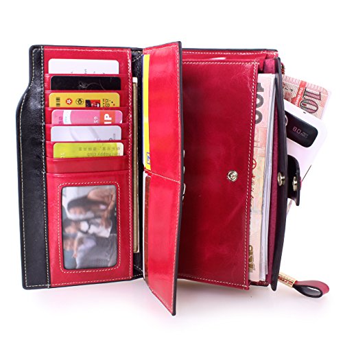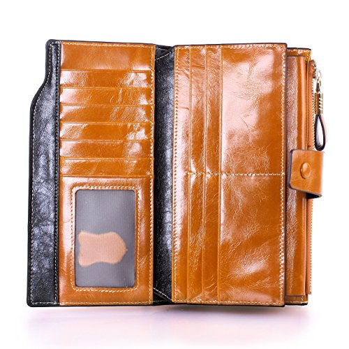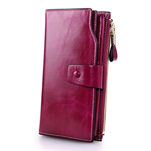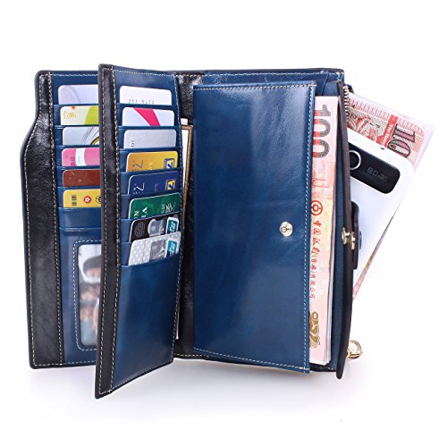 Material: Top grain oil wax cowhide(Genuine Leather) Size: 7.48 x 3.94 x 0.79 inches Weigh: 5.47 ounces Style: OL style Characteristic: Large capacity design. Delicate snap button and zip closure,easy to hold your your phone, cards, bills and money. About the oil waxy leather: Oil wax cowhide is made of top layer leather which is seems more shiny or glossy after the process of superficial by burnishing, oiling and waxing, just like add wax oil into leather. It is a fashion craftwork of leather with vintage artistic effect. This wallet is made of Oil wax cowhide, which has many irregular wrinkles, and clear texture. This is natural leather texture formation, also is the characteristics of Oil wax cowhide. The longer the better, the leather will be more luster; the more likely they were to have lasting appeal. How to maintain the leather bag: Keep your Oil wax cowhide product away from WATER, OIL STAINS; because Oil wax cowhide has strong Water absorption and oil adsorption. If the surface of Oil wax cowhide product has light scratching, just used soft cloth clean it repeatedly. If the surface of Oil wax cowhide product has Stains, just used colorless wax oil daub and clean it. The real color of the bag may be slightly different between the photo and the actual item shown on website caused by many factors such as brightness of your monitor and light brightness. It is totally normal for any mistake owing to munual measurement.Cowhide material has natural leather smell,but it will be disappear after you use in a few days. 0