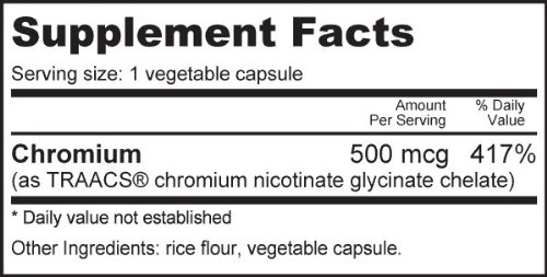 Studio : NutraBio Publisher : NutraBio Binding : Health and Beauty Product Description NutraBio Chromium 500 mcg V-Caps uses a unique, patented form of chromium, which consists of the mineral chromium bound to the natural and more bioavailable "L" form of the amino acid glycine to give maximum assimilation and absorption. 0