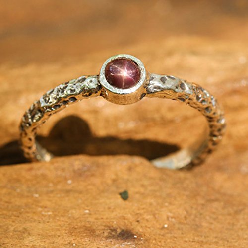 -. Brand : Metal Studio Jewelry -. Department : unisex-adult -. IsAdultProduct : 0 -. ProductGroup : Guild Product -. ProductTypeName : GUILD_JEWELRY -. Title : Round red star ruby ring in silver bezel setting with sterling silver hard texture oxidized band