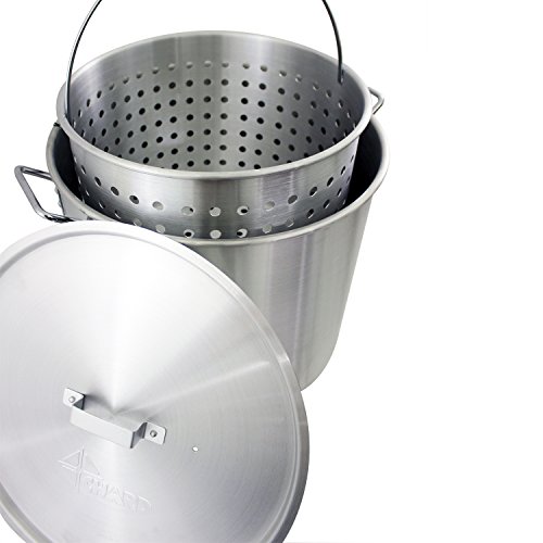The CHARD 60 QT. Aluminum Pot with Strainer Basket is the perfect addition to your outdoor cooking equipment. Constructed of no-rust aluminum, the 60-quart stock pot features a vented, recessed cover that releases steam and keeps foods warm until serving time. Heavy duty riveted side handles provide safe handling and secure movement. Also includes a perforated strainer basket with 0.5 Inch diameter holes for quick draining. Ideal for frying, steaming, boiling or brewing. CHARD Products put you in control with a little help from the right tools. From meat processing, to outdoor cooking, to simple food preparation, we help you Make It Yours.Feature