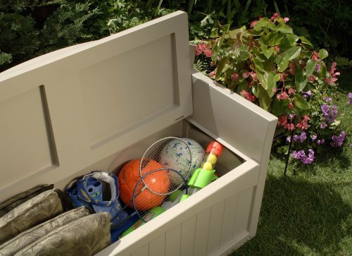 -. Color : Taupe -. EAN : 0755263231707 -. Feature : Easy 5-minute, tool-free assembly / Stay-dry design and long-lasting resin construction / Exterior measures 52 3/4 by 21 by 34 1/2 inches (W x D x H) / Interior measures 47 3/4 by 17 1/2 by 16 1/2 inches (W x D x H) -. Label : Suncast -. Manufacturer : Suncast -. ProductGroup : Lawn & Patio -. ProductTypeName : OUTDOOR_LIVING -. Publisher : Suncast -. Size : 53.8 x 21 x 34.5 inches -. Studio : Suncast -. Title : Premium Storage Bench Furniture Seat for Patio Deck or Garden Seating Outdoor in Suncast Small Design -. UPC : 755263231707