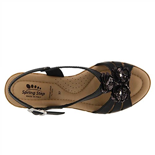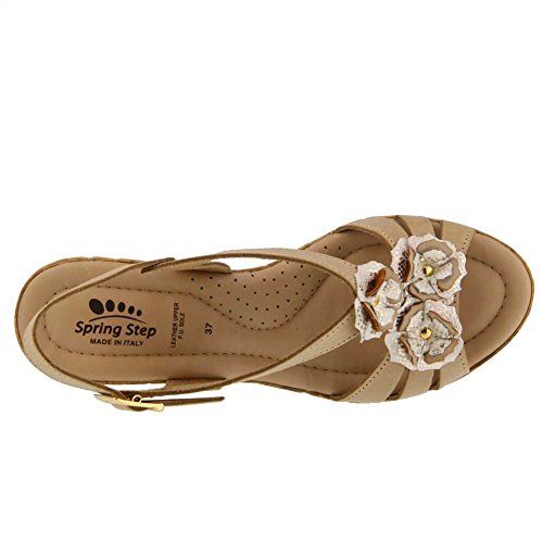 Studio : SPRING STEP Publisher : SPRING STEP Binding : Apparel Product Description Women's Spring Step, Teomina Wedge Sandals Stand out in these cute wedges Leather uppers with flower accents Ankle strap with adjustable buckle closure Smooth leather linings for an abrasion free foot environment Padded footbed for added comfort 3 inch wedge heel Manmade outsole. Heel Height of 3.00 inches 0