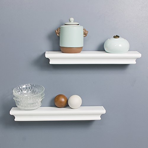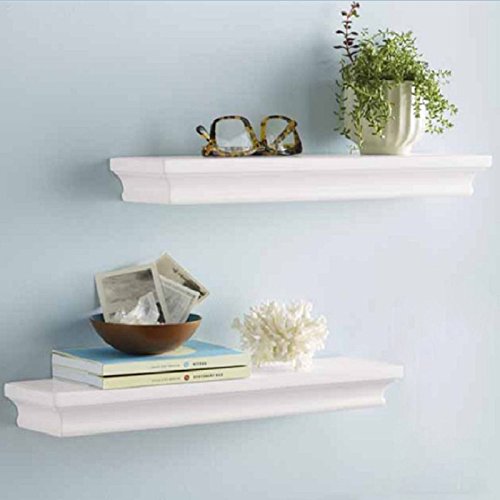 LightStan Traditional Wood Floating Wall Shelf Set White Tray Decorative Ledge of 2pcs