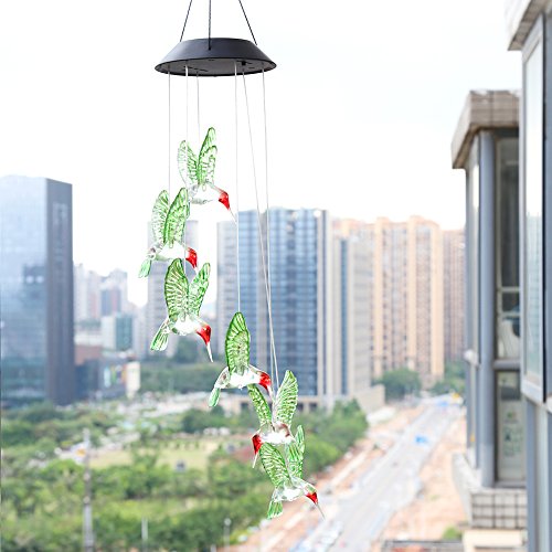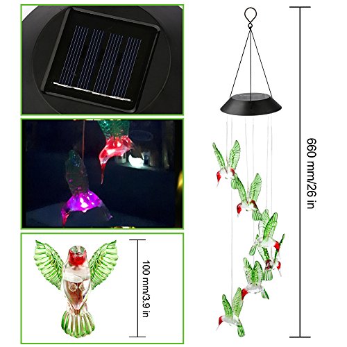 -. Title : Accmor Solar Light Wind Spinner Chimes – Color Changing LED Hummingbird Wind Chimes, Waterproof Outdoor Décor with 2 Hooks