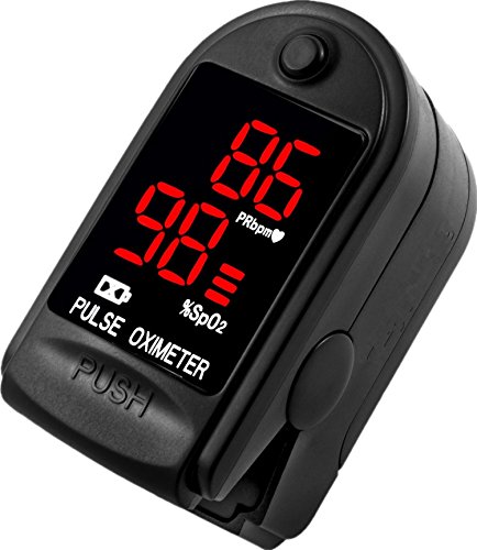 Quickly Measure, your Blood's SpO2 Oxygen Saturation Arterial Hemoglobin Levels, Pulse Rate and Pulse Strength in 10 seconds or less displayed on its large digital red LED display